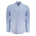 Elevate your wardrobe with the epitome of sophistication – the Harmont & Blaine checked long sleeve shirt. Boasting a classic regular fit with sharp button-down collar, this piece is a harmonious blend of elegance and comfort. It’s the attention to detail that sets it apart: 1-button cuffs with a contrasting interior, subtle yet signature embroidery, and impeccable buttons. Crafted from premium organic cotton, this shirt offers a serene light blue hue that complements any style with grace. Make a statement in upscale fashion.