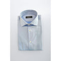 Revamp your wardrobe with the sleek sophistication of Baldinini Trend’s latest creation. Crafted for the modern man who appreciates the blend of classic style with a contemporary fit, this slim-fit shirt boasts a French collar that adds a touch of elegance to any ensemble. Designed for seamless transition from the boardroom to after-work engagements, its front closure and cuffs are adorned with tasteful buttons that offer both functionality and a hint of Italian finesse. The light blue hue makes it versatile for countless occasions.