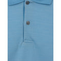 Dunhill Sky Blue Cotton Polo. In jacquard cotton/silk fabric with micro print, knitted collar and cuffs, front fastening with buttons. Regular fit