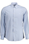 Discover the impeccable craftsmanship of Harmont & Blaine in this sophisticated Light Blue Regular Fit Shirt. Tailored for a polished appearance, it features long sleeves and a button-down collar for a classic look. Adorned with 1 button cuffs and contrasting inside cuff details, the shirt is finished with elegant buttons and the distinctive Harmont & Blaine logo, adding a touch of class to your wardrobe.