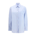 The Metis Shirt by The Row is crafted from premium cotton poplin, featuring a clean, refined silhouette that embodies the brand’s minimalist elegance. It has a front button closure, buttoned cuffs, and mother-of-pearl buttons, offering a subtle touch of understated sophistication.