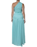 Light Blue Jersey Long Drape One Shoulder Dress