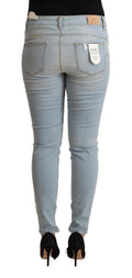 Light Blue Cotton Mid Waist Slim Fit Denim Jeans