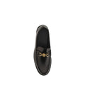Versace’s leather Loafers combine classic elegance with iconic details. Featuring a slightly elongated round toe and a leather block heel, they feature a front tray embellished with a plaque featuring the iconic Medusa head, the house’s distinctive symbol. The logo-embossed insole completes the design, ensuring comfort and unmistakable style.