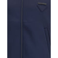 Contemporary style Sweatshirt by Prada, made with a high collar and front zipper closure. Raglan sleeves ensure comfort and freedom of movement, while the two side welt pockets offer practicality and a functional touch. The design is completed with a distinctive triangular patch applied on the front and a logo patch that recalls the brand’s iconic identity.