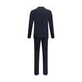 Dsquared2 Virgin Wool London Suit, consisting of jacket and pants. Wool blazer jacket, front button closure, three welt pockets on the front with flap, one slit pocket on the front, peaked lapels. Classic wool pants, front zipper and button closure, two welt pockets on the side, two welt pockets on the back.