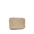 Calfskin Love Baby Shoulder Bag by Pinko, front closure with magnetic button, iconic gold-plated Love Birds logo embossed on the front, quilted and padded design, double internal compartment, sliding chain shoulder strap, iconic brand monogram embroidered tone-on-tone on the back.