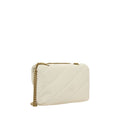 Calfskin Love Classic Shoulder Bag by Pinko, front closure with magnetic button, iconic gold-plated Love Birds logo embossed on the front, quilted and padded design, double internal compartment, sliding chain shoulder strap, iconic brand monogram embroidered tone-on-tone on the back.