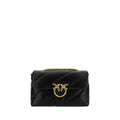 Calfskin Love Classic Shoulder Bag by Pinko, front closure with magnetic button, iconic gold-plated Love Birds logo embossed on the front, quilted and padded design, double internal compartment, sliding chain shoulder strap, iconic brand monogram embroidered tone-on-tone on the back.