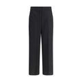 The Marengo Trousers by Max Mara Studio express contemporary elegance through clean lines and a fluid silhouette. Crafted from lightweight pure wool drap, they feature a wide leg and a relaxed fit that moves gracefully with the body. The high waistband with concealed zip and hook closure highlights the refined tailoring, while the slanted side pockets add a touch of understated practicality. A pressed crease and stitched back pleats define the shape, enhancing the trousers’ balance and structure. Versatile and polished, they are ideal for creating modern, sophisticated looks that transition effortlessly from day to evening.