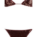 Oséree’s Marylin Swimsuit is a bright take on the classic triangle bikini. Lacing at the neck, back, and hips ensures an adjustable and comfortable fit, while all-over sequins enhance the silhouette with bright highlights and a touch of glamour.