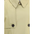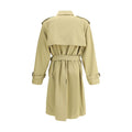 Burberry’s medium cotton gabardine Trench Coat is an iconic garment with a refined and functional design. Featuring raglan sleeves, double-breasted closure, epaulettes, chin strap and belt with a B-shaped buckle, it combines elegance and practicality. The interior, lining and undercollar are finished with the classic Burberry Check pattern, while flap pockets, adjustable cuffs and back vent complete the look with distinctive details.