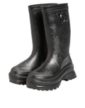 Gorgeous brand new, 100% Authentic Dolce & Gabbana shoes feature a striking black color in a sleek pull-on rain boot design. These fashion-forward boots are crafted from premium waterproof materials, offering both style and practicality. Perfect for elevating rainy day outfits with a bold designer touch.