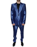 Metallic Blue Stripes Formal 3 Piece Suit