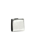 Metallic leather Bi-Fold Wallet by Margiela is crafted from calfskin in shades of silver and black, with a metallic finish and elegant texture. The compact bi-fold design includes a zippered compartment, interior card slots, and dedicated bill slots. The discreet internal logo complements the brand’s minimalist and distinctive aesthetic.
