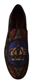 Multicolor Jacquard Crown Slippers Loafers Shoes
