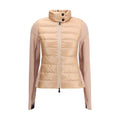 The padded zip-up Sweatshirt from the Moncler Grenoble Women’s collection is designed to provide warmth and comfort even in the most demanding conditions. Crafted from stretch jersey with padded nylon laqué front panels, it seamlessly combines technical performance with refined style. A high neck with snap button closure and water-repellent zip ensure protection against the elements, while zipped pockets and elastic jersey cuffs with tricolor trim highlight its sporty yet elegant appeal. Perfect for skiing, snowboarding, trekking, and hiking, it is the technical layer that merges functionality with contemporary design.