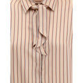 The Yvonne Shirt by Cruna embodies relaxed sophistication through refined design and premium materials. Crafted from striped satin in a viscose and silk blend, it features an oversized silhouette that drapes elegantly. The detachable scarf and metal buttons at the collar and cuffs lend distinctive character, blending femininity with contemporary flair. Ideal for enhancing business looks or transitioning into more casual moments, Yvonne is a versatile expression of effortless elegance.