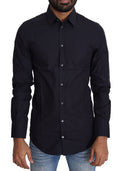 Absolutely stunning, 100% Authentic, brand new with tags Dolce & Gabbana GOLD slim fit shirt in navy blue features a spread collar and full button closure.