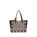Valentino Garavani’s Nellcôte medium Tote Bag is a dramatic and refined accessory embellished with mirror and sequin embroidery. The profile is decorated with iconic ball studs and rivets, distinctive elements of the maison. Equipped with comfortable handles, it can be carried either by hand or on the shoulder. Completing the design is the small metallic detail with Signature VLogo and a removable internal pouch, perfect for holding essentials.
