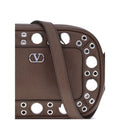 Valentino Garavani’s Nellcôte Shoulder Bag is crafted from garnet calfskin and embellished with a profile decorated with ball studs and rivets for a gritty yet refined look. Equipped with an adjustable leather shoulder strap, it can be worn comfortably on the shoulder or cross-body. The zipper closure and metal parts with palladium finish complete the design, along with the small metallic detail with Signature VLogo that signs the accessory with discreet elegance.