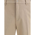 Fendi’s cotton New Rich Pants combine clean lines and distinctive details for a contemporary, refined look. Made of high-quality cotton, they feature a front zipper and button closure, belt loops at the waist, and a functional design with two slash pockets at the hips and two slit pockets at the back. The garment is completed with a logoed leather patch, applied on the back, which adds an iconic touch signed Fendi. Ideal for completing casual-elegant outfits with unmistakable style.