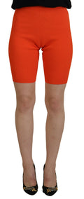 Orange Viscose Mid Waist Slim Fit Bermuda Shorts