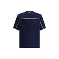 Thom Browne’s oversized T-Shirt combines an essential aesthetic with distinctive details. Made with a ribbed crew neck, it features two side slits that add comfort and movement. An iconic patch stands out on the front, while colorful bands on the back lend an unmistakable touch, discreetly signing off the brand’s style.