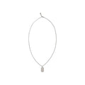 The Pendant Necklace by Alexander McQueen is an accessory with a bold and contemporary character. Crafted with a silver-toned, logo-embossed plaque, it stands out for its essential yet impactful design. The hook-and-eye closure ensures a practical and secure fit, while the engraved logo detail enhances the house’s iconic aesthetic.