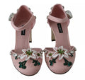 Pink Brocade Crystal Lily Ankle Strap Shoes