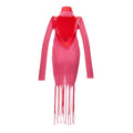 Bottega Veneta Stretch Knit Long Dress with Fringes, doubled with two fabrics in pink and red, mock neck, long sleeves, stretch ribbed knit, sheath pattern, long two-tone bangs on bottom. SKU Item: 631324 VKWM0. Composition: 57% Cotton, 43% Silk-Sku inside:23OT45