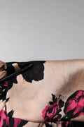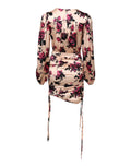Pink Floral Silk Long Sleeves V-neck Ruched Mini Dress
