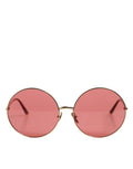 Pink Gold Metal Round Shades Eyewear Sunglasses