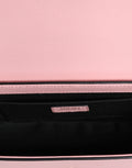 Pink Grainy Calf Leather Logo Crossbody Shoulder Bag