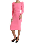 Gorgeous brand new, 100% Authentic Dolce & Gabbana pink midi dress is tailored from smooth polyester in a sleek sheath silhouette. Featuring long sleeves and a classic midi length, it offers a sophisticated fit that transitions seamlessly from day to evening. A timeless piece that embodies understated luxury.