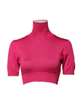 Pink Silk Knitted Turtleneck Cropped Top