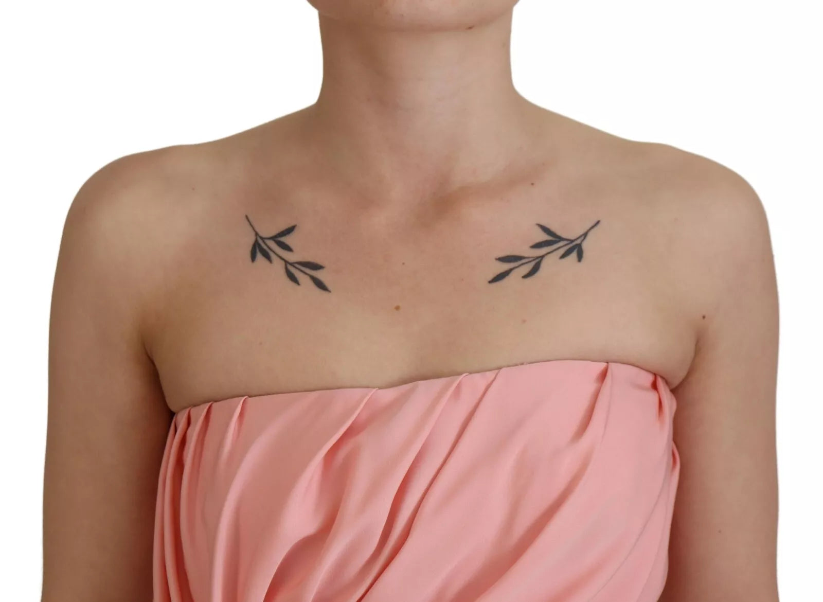 Pink Silk Stretch Strapless Sheath Midi Dress