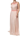 Pink Sleeveless Pleated A-line Maxi Dress