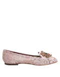 Gorgeous brand new, 100% Authentic Dolce & Gabbana elegant Vally shoes are exquisitely crafted in Italy from the finest Taormina lace. Seen here in light pink, these pretty floral lace Vally slippers from Dolce & Gabbana will instantly lift your look to new sartorial heights. Featuring an almond toe, a branded leather insole and a wearable flat leather sole, these beauties are finished with a sparkling decorative crystal flower on the front.