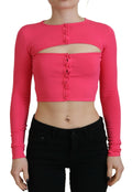 Pink Viscose Knit Open Chest Long Sleeves Top