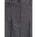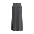 The pleated long Skirt in virgin wool techno gauze by Brunello Cucinelli stands out for its fine materials and refined details. The lightweight fabric enhances the wide pleating that runs along the entire length of the garment, creating a sense of fluidity and movement. The zip and tab closure, combined with the back welt pocket, evoke masculine tailoring codes, while the hem with slits emphasizes the feminine silhouette. Completing the design, the signature monile detail adds a luminous accent, a distinctive mark of Brunello Cucinelli’s timeless elegance.