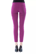 Embrace the epitome of sleek Italian design with BYBLOS’s Skinny Pants. Tailored to perfection, they feature a side zip closure that offers a flawless silhouette. Adorned with a subtle frontal application, these pants are a testament to expert craftsmanship and high-fashion sensibility. Perfect for adding a splash of color to your wardrobe, they come in a rich purple hue that makes a bold statement.