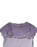 Purple Short Sleeves Floral Lace Trim A-line Midi Dress