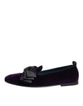 Purple Suede Cotton Bow Slip On Loafers Shoes