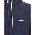Prada’s Re-Nylon Jacket is a functional and refined garment designed for modern, sustainable elegance. Featuring an adjustable hood with drawstring and front closure with a double-slider zipper, it has two side welt pockets and a hem that is also adjustable. On the front, the classic triangular patch with logoed label, the distinctive symbol of the Maison, stands out.