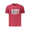 Elevate your casual wardrobe with the Napapijri short sleeve t-shirt. Proudly crafted for the modern trendsetter, this relaxed-fit tee features a striking crew neck silhouette complemented by a bold print and the iconic Napapijri logo. Embrace sustainability without sacrificing style, as this piece is made from 100% organic cotton, offering both comfort and eco-conscious fashion. Radiate confidence in a vibrant shade of red that promises to turn heads and spotlight your bold taste.