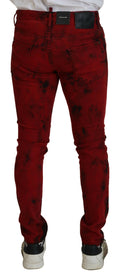 Red Cotton Tie Dye Skinny Casual Men Denim Jeans