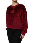 Red Cotton Velvet Crew Neck Pullover Sweater