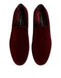 Red Cotton Velvet Slip On Loafers Formal Shoes