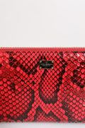 Red Exotic Leather Zip Around Continental Clutch Wallet